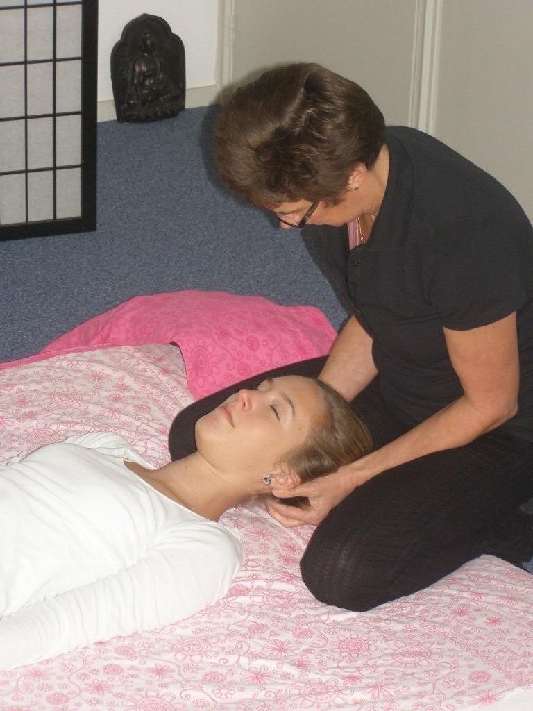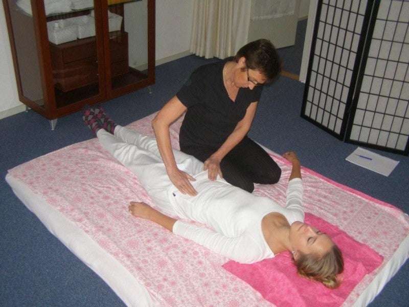 De behandeling wordt gegeven op een futon; een matras op de grond.